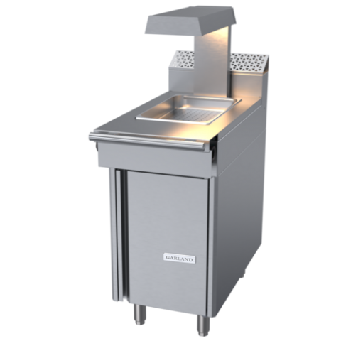 Garland Cuisine Fryer Dump Station, 18”W, open storage base, spreader top with insert for food pan (included), 7”H backguard, 6” stainless steel adj. legs, CSA, NSF (Garland)