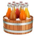 Frilich® Carafine Beverage Bucket/Tub Set, 15-3/4" dia. x 14-3/10"H, round, includes: (7) 1 qt. glass bottles, bottle supporting frame, polycarbonate insert/liner, wood (special order, 6 week lead time, contact G.E.T. for minimum order quantity & details)