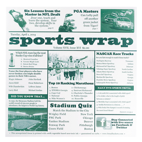 Clipper Mill Food-Safe Sports Newsprint Liner, 12" x 12", paper, white (1000 pieces per case)