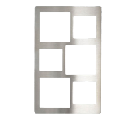 Tile, 21-11/16" x 13-1/4", with three large and three small squares cut-outs, stainless steel (special order item, contact G.E.T. for minimum order quantity)
