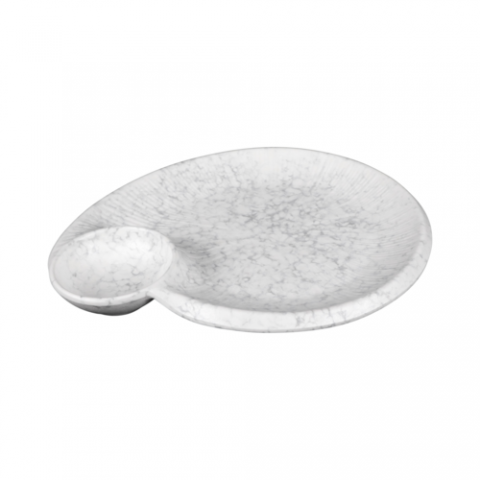 Elite Global Solutions - Chip & Dip Plate, 1-1/2 oz., 9-1/2" x 8" x 1"H, round, break, chip, stain & scratch resistant, dishwasher safe, BPA free, melamine, gray marble, Hermosa