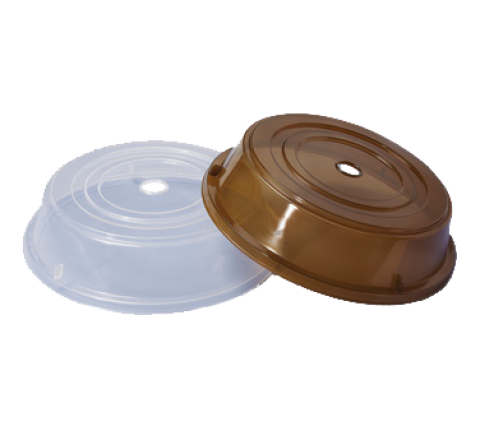 Plate Cover, fits 10.6" to 11.4" round plate (top inset 4-1/2" & 6-1/2" dia.) or B-1611, break-resistant, dishwasher safe, BPA free, polypropylene, amber
