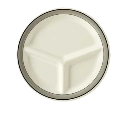 Diamond Cambridge™ Plate, 10-1/4" dia., 3-compartments, round, break-resistant, dishwasher safe, BPA free, melamine, white with gray rim, NSF