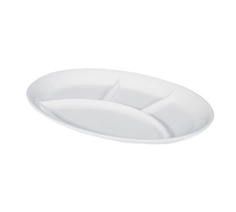 Diamond White™ Plate, 13"L x 9-1/2"W, oval, 4-compartments, break-resistant, dishwasher safe, BPA free, melamine, white, NSF
