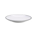 Settlement Bistro™ Enamelware Dinner Plate, 9", round, small, dishwasher safe, melamine, white with black trim, NSF, BPA Free