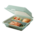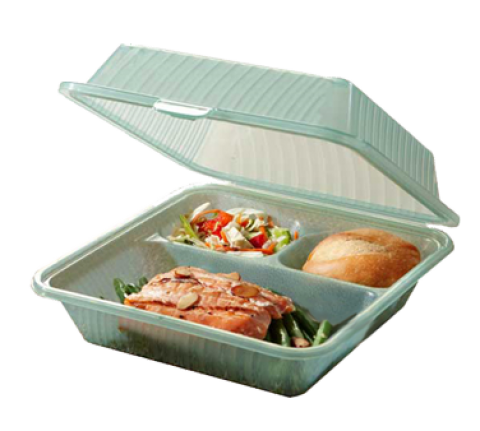 G.E.T Food Container, 9"L x 9"W x 3-1/2"H, 3-compartments, leak-resistant snap closure, stackable, reusable, recyclable, break-resistant, dishwasher safe, microwave safe for re-heating, polypropylene, jade, Eco-Takeout's®, NSF
