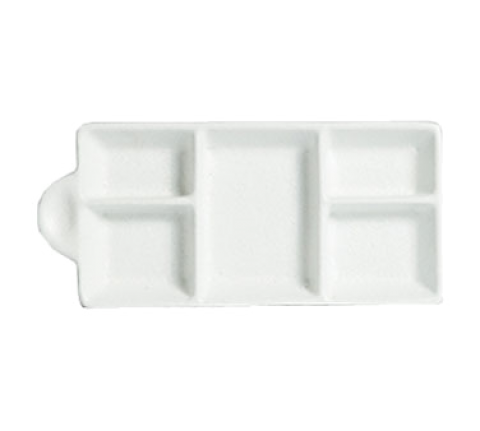 Bugambilia® Condiment Dish, 5-division, 10.14 oz., 9.84"L x 4.45"W, 0.87" deep, cast aluminum with resin coating, jade (3-4 week lead time)