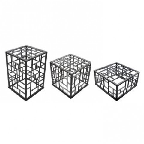 Bugambilia® Mondrian Riser Set, 3 piece, includes (1) each: 10" x 10" x 14-1/2"H, 11" x 11" x 10-3/4"H, 13" x 13" x 6-3/4"H, square, cast aluminum with powder coating, steel (30 day lead time)