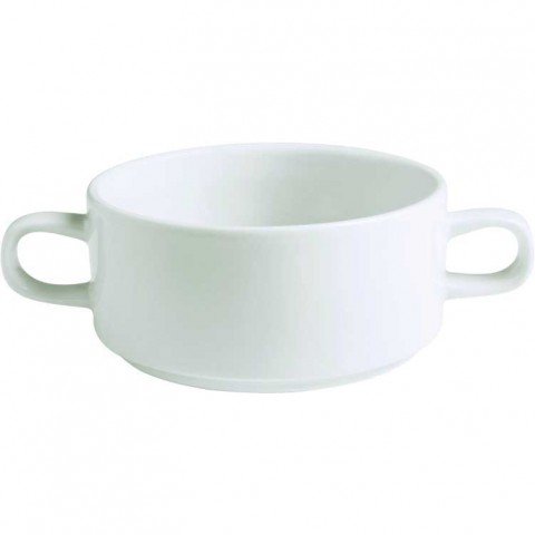 Soup Cup, 11 oz., 4" dia., 6" with handles, rolled edge, stackable, scratch/chip resistant, microwave, dishwasher & oven safe up to 380°F, porcelain, Corona, Actualite, bright white (Made to Order item- 6 to 8 weeks lead time, minimum order = case quantity)