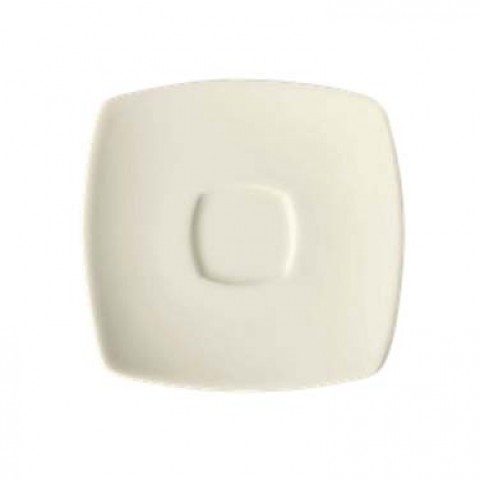 Espresso/Tea Saucer, 6-1/2", square, rolled edge, geometric line, scratch/chip resistant, microwave, dishwasher & oven safe up to 380°F, porcelain, Corona, Asia, bright white (Stocked Item)