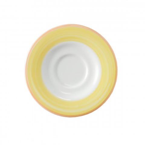 Tea/Bouillon Saucer, 6-1/2" dia., round, scratch/chip resistant, microwave, dishwasher & oven safe up to 380°F, porcelain, orange edge, Corona, Calypso, Yellow (Stocked Item)