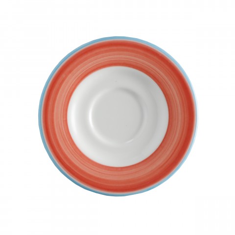 Coffee/Espresso Saucer, 5" dia., round, scratch/chip resistant, microwave, dishwasher & oven safe up to 380°F, porcelain, blue edge, Corona, Calypso, Coral (Made to Order item- 12 weeks lead time, minimum order = 42 dozen)