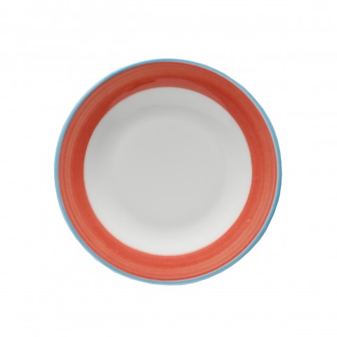 Plate, 6-1/2" dia., round, rolled edge, scratch/chip resistant, microwave, dishwasher & oven safe up to 380°F, porcelain, blue edge, Corona, Calypso, Coral (Stocked Item)