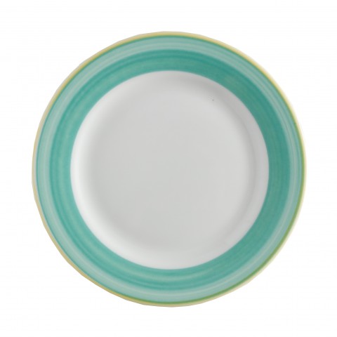 Plate, 8" dia., round, rolled edge, scratch/chip resistant, microwave, dishwasher & oven safe up to 380°F, porcelain, yellow edge, Corona, Calypso, Green (Stocked Item)