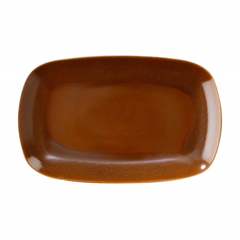 Tray, 13-2/5" x 8-1/4", rectangular, rolled edge, geometric line, scratch/chip resistant, microwave, dishwasher & oven safe up to 380°F, porcelain, Corona, Cosmos Venus, caramel reactive glaze (Stocked item) (to be discontinued, contact factory for availability)