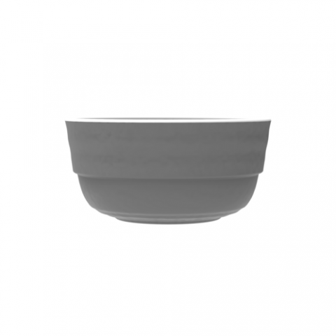 Roca Balance Sauce Dish, 3 oz. (4 oz. rim full), round, stackable, melamine, white matte inside/ gray matte outside