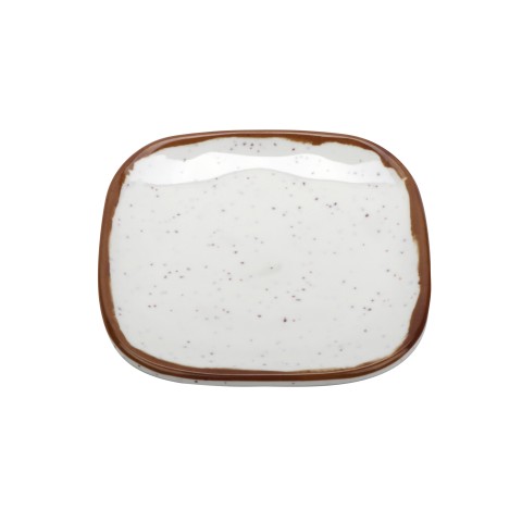 Rustic Mill™ Plate, 4" x 4", square, irregular, break-resistant, dishwasher safe, melamine, cream base with brown speckles & brown rim, NSF, BPA free