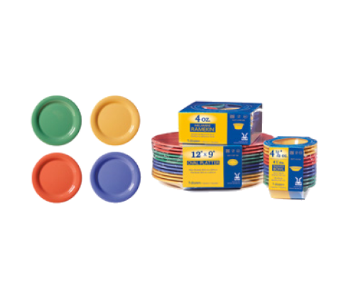 Diamond Mardi Gras™ Plate, 6-1/2" dia., round, narrow rim, break-resistant, dishwasher safe, BPA free, melamine, mix pack of 4 Mardi Gras™ colors (tropical yellow, rio orange, peacock blue & rainforest green), NSF (special packaging)