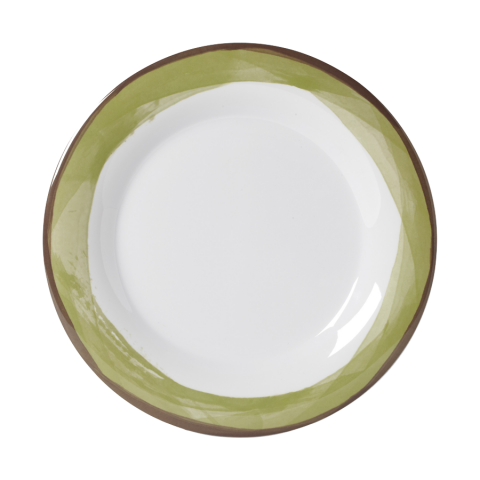 Diamond White™ Plate, 10-1/2" dia., round, wide rim, break-resistant, dishwasher safe, BPA free, melamine, Kanello™ green, NSF (to be discontinued, contact factory for availability)
