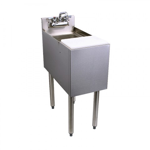 CHOICE Underbar Mixology Unit, free standing, 12”W x 24"D O.A., 9-1/4” wide x 11-1/2” front-to-back x 6” deep bowl, splash mounted faucet, lift-out plastic perforated sink strainer, 11”W x 8”D removable cutting board, stainless steel construction, stainless steel legs with adjustable thermoplastic bullet feet, low lead compliant, ETL-Sanitation (NOTE: Made to order, not returnable)