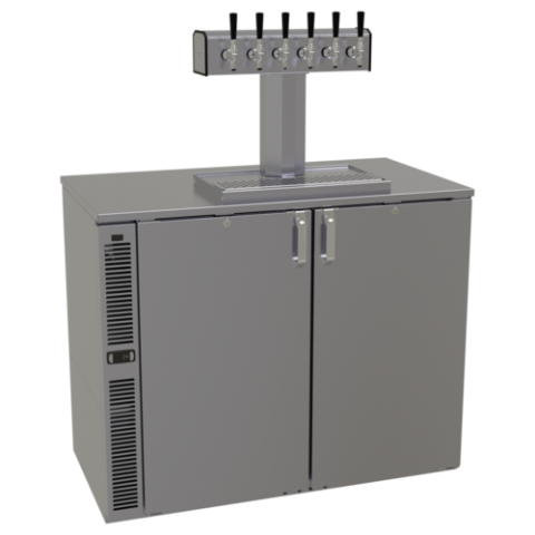 Draft Dispensing Cooler, one zone, side serviced, bar profile, 44"W, two-section, 16"W door opening, self-contained refrigeration, bright white LED interior lighting, front venting, stainless steel interior with keg racks, 1" stainless steel finished top, galvanized steel back, R290 Hydrocarbon refrigerant, 1/8 HP, NSF Standard 7 for open food storage, cETLus, ETL-Sanitation, ETL Verified (NOTE: Made to order, not returnable)