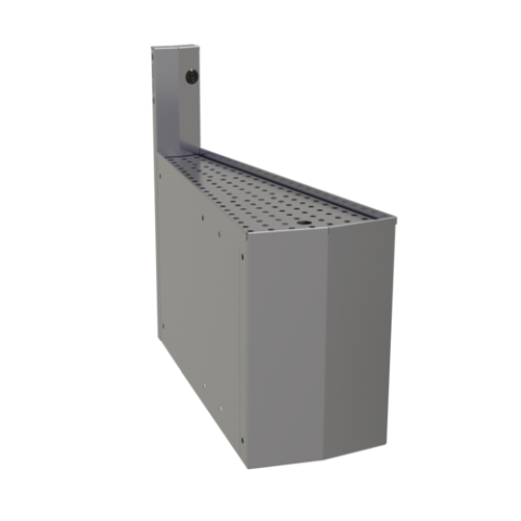 Underbar Outside Wedge Corner Drainboard, with removable perforated insert, 15° angle, 24" deep, with backsplash, stainless steel construction, no legs (mounts between two adjacent underbar pieces), ETL-Sanitation (NOTE: Made to order, not returnable)