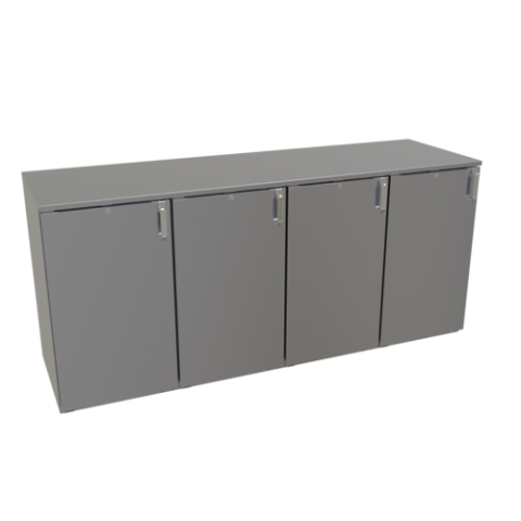 Back Bar Dry Storage Cabinet, four-section, 80"W, non-refrigerated, (4) solid hinged doors, (2) adjustable shelves per section, galvanized steel interior, galvanized steel back, stainless steel bullet feet, ETL-Sanitation (NOTE: Made to order, not returnable)