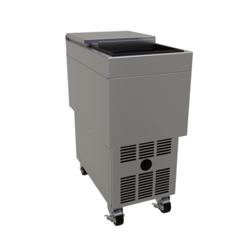 Craft Ice Holding Freezer, mobile, 14"W x 24"D x 31-1/4"H, self-contained refrigeration, temperature range -5°F (-20°C) to 10°F (-12°C), sliding lid, stainless steel interior & exterior, 4-1/8" swivel casters (2 locking), R290 Hydrocarbon refrigerant, 1/4 HP, cETLus, ETL-Sanitation, ETL Verified