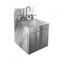 Hand Sink, wall mount with skirt, 14"W x 15"D OA, 9-1/4" wide x 11-1/2" front-to-back x 6" deep bowl, 4" OC deck mount faucet holes (faucet not included), built-in soap dispenser, C-fold towel dispenser on front, includes mounting bracket & 1-1/2" I.P.S. drain fitting, stainless steel construction, ETL-Sanitation