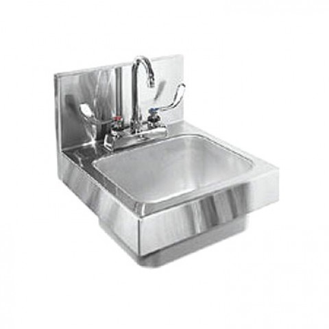 Hand Sink, wall mount, 14"W x 15"D O.A., 9-1/4" wide x 11-1/2" front-to-back x 6" deep bowl, deck mount faucet with gooseneck spout (low lead compliant), includes mounting bracket & 1-1/2" I.P.S. drain fitting, stainless steel construction, ETL-Sanitation (NOTE: Made to order, not returnable)