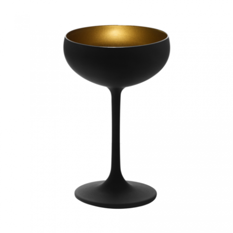Champagne Saucer Glass, 8 oz., 3-3/4" x 5-3/4", Glisten Matte Black & Gold, Stolzle, Crystalline (minimum = case quantity, 24 per case) (Stock Item)
