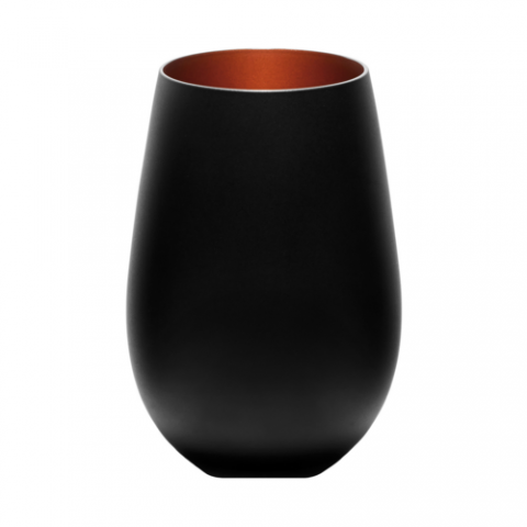 Wine Glass, 16-1/2 oz., 3-3/8" x 4-3/4", stemless, Glisten Matte Black & Copper, Stolzle, Crystalline (minimum = case quantity, 24 per case) (Stock Item)