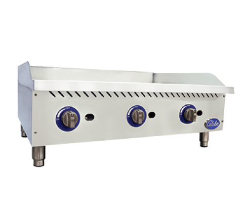 (QUICK SHIP) Griddle, gas, countertop, 36" wide, 1" highly polished griddle plate fully welded to stainless steel frame, manual controls every 12", individual adjustable pilots with front access, 4" wide grease trough, stainless steel double wall construction with extended cool-to-touch front edge, 4" adjustable heavy duty stainless steel legs, 90,000 total BTU, cETLus (unit ships Natural Gas with LP conversion kit included) (Ships within 1-2 days)