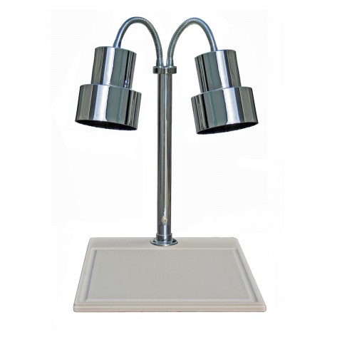 Heat Lamp, Streamline style, (1) dual bulb, (2) 250 watt Teflon coated infrared heated bulbs, mounted on 18" x 20" white solid surface carving base with gravy lane, 200-series shades, stainless steel, (specify finish), 115v/60/1-ph, 500 watts, 4.35 amps, NEMA 5-15P (ships in 2 cartons)