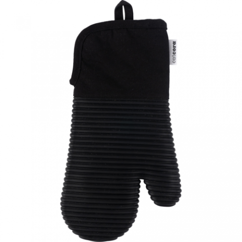 Cat Cora Oven Mitt, 10"W x 13"D x 0.5"H, black, heavyweight cotton and polyester, quilted lining, non-slip silicone overlay, heat resistant up to 500°F, machine washable