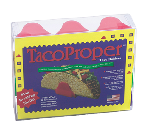 Tacoproper™ Fiesta Pack Taco Holders, plastic, assorted colors (3 of each color: red, yellow, purple, green) (12 each total per set)