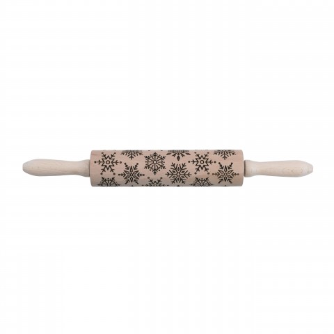 Mrs. Anderson's Baking® Snowflake Design Rolling Pin, 8" x 1-3/4", 15" with handles, laser-etched design, electroplated iron ball bearings, European beechwood (carded)