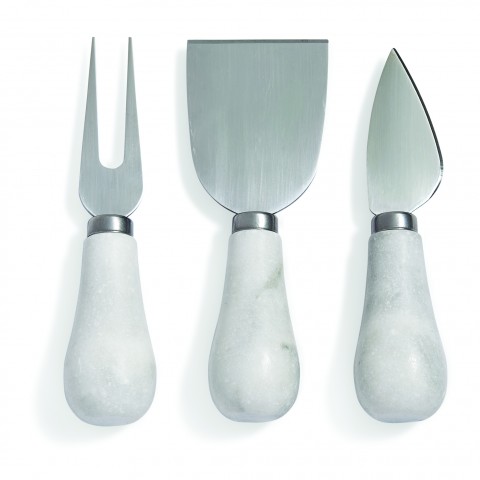 Maison du Fromage Cheese Tool Set, 3-piece, includes (1) each: 5" x 3/4" pronged fork, 5" x 1-3/4" mini spade knife, & 5" x 1" flat cheese knife, stainless steel, marble handles (boxed)