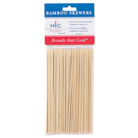 HIC Skewers, 6", bamboo (100 pack) (carded) (must be purchased in case quantities)