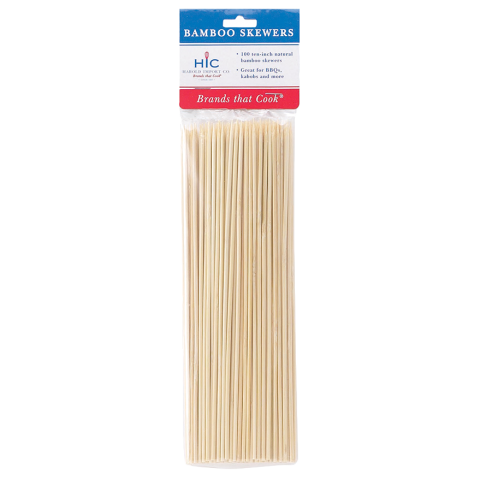 HIC Skewers, 10", bamboo (100 pack) (carded) (must be purchased in case quantities)