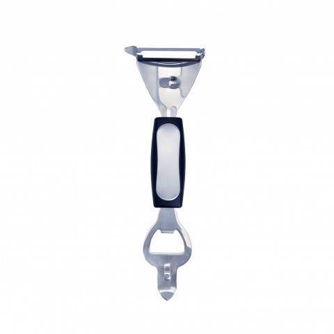 The World's Greatestâ„¢ Bar Tool, 7-3/4" x 2-3/4", 4-in-1, includes can opener, fruit/vegetable peeler, bottle cap opener and citrus rind stripper, stainless steel/ABS (carded)