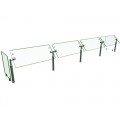 Flav-R-Shield® B950 Food Shield, adjustable self-service, 4 Bays 132"W x 18"D x 23"H, heat tempered glass construction throughout with 3/4" radius corners and polished edges, 3/8" thick glass front and side panels, 1" OD brushed 304 stainless steel posts, adjustable Face Panel rotation in 15-degree increments, NSF component, Made in the USA
