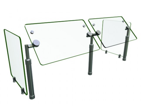 Flav-R-Shield® B950 Food Shield, adjustable self-service, 2 Bays 48"W x 18"D x 23"H, heat tempered glass construction throughout with 3/4" radius corners and polished edges, 3/8" thick glass front and side panels, 1" OD brushed 304 stainless steel posts, adjustable Face Panel rotation in 15-degree increments, NSF component, Made in the USA