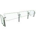 Flav-R-Shield® B950 Food Shield, adjustable self-service, 3 Bays 96"W x 18"D x 23"H, heat tempered glass construction throughout with 3/4" radius corners and polished edges, 3/8" thick glass front and side panels, 1" OD brushed 304 stainless steel posts, adjustable Face Panel rotation in 15-degree increments, NSF component, Made in the USA