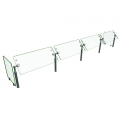 Flav-R-Shield® B950SWIVEL Food Shield, adjustable self-service, 4 Bays 132"W x 18"D x 23"H, heat tempered glass construction throughout with 3/4" radius corners and polished edges, 3/8" thick glass front and side panels, 1" OD brushed 304 stainless steel posts, adjustable Face Panel rotation in 15-degree increments, Bracket Heads on Face swivel 90 degrees up to 270 degrees to accomodate turns using multiple bays, NSF component, Made in the USA