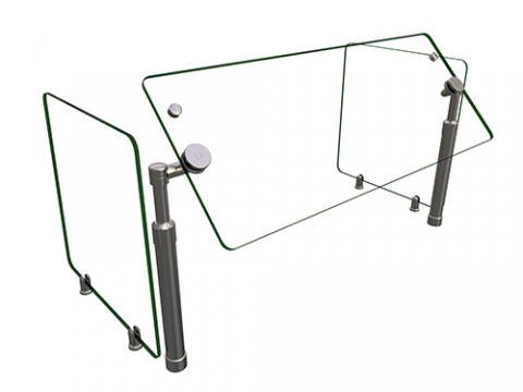 Flav-R-Shield® B950SWIVEL Food Shield, adjustable self-service, 1 Bay 36"W x 18"D x 23"H, heat tempered glass construction throughout with 3/4" radius corners and polished edges, 3/8" thick glass front and side panels, 1" OD brushed 304 stainless steel posts, adjustable Face Panel rotation in 15-degree increments, Bracket Heads on Face swivel 90 degrees up to 270 degrees to accomodate turns using multiple bays, NSF component, Made in the USA