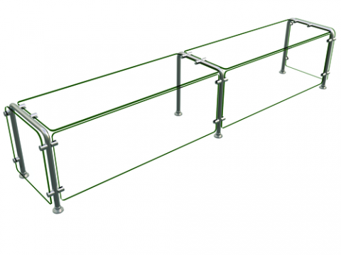 Flav-R-Shield® ED20 Food Shield, full service, 84"W x 15"D x 18"H, heat tempered glass construction throughout with 3/4" radius corners and polished edges, 3/8" thick glass top shelf, front panel and side panels, 1" OD brushed 304 stainless steel posts, NSF component, Made in the USA