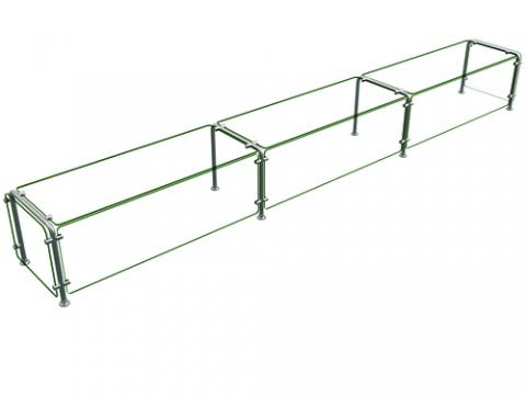 Flav-R-Shield® ED20 Food Shield, full service, 144"W x 18"D x 18"H, heat tempered glass construction throughout with 3/4" radius corners and polished edges, 3/8" thick glass top shelf, front panel and side panels, 1" OD brushed 304 stainless steel posts, NSF component, Made in the USA