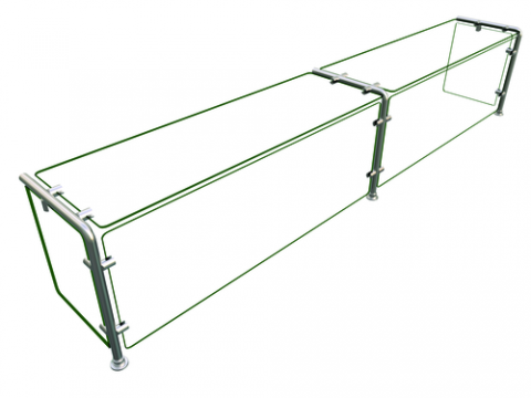 Flav-R-Shield® EP11 Food Shield, full service, 84"W x 12"D x 18"H, 1/4" thick heat tempered glass construction throughout with 3/4" radius corners and polished edges, glass top shelf, front and side panels, 1" OD brushed 304 stainless steel posts, NSF component, Made in the USA