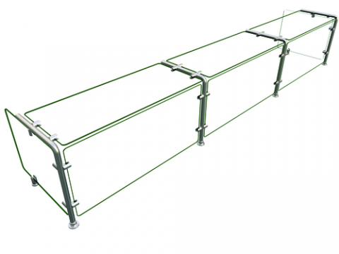 Flav-R-Shield® EP11 Food Shield, full service, 96"W x 18"D x 18"H, 1/4" thick heat tempered glass construction throughout with 3/4" radius corners and polished edges, glass top shelf, front and side panels, 1" OD brushed 304 stainless steel posts, NSF component, Made in the USA